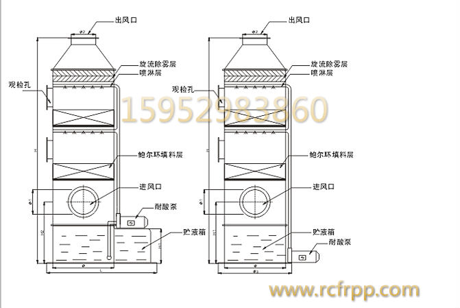塔体Ҏ(gu)需要可采用PP、PVC、FRPP、PPH{防腐材料制成,塔内可加入填充料以提高吸收效果,塔体底部装有液气分离器,水܇(ch)Q风机,自动加药讑֤Q选装Q等均可Ҏ(gu)用户需求选用?nbsp;